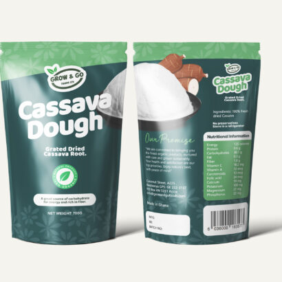 Our cassava dough can be used to make different dishes, such as banku, akyeke, tapioca, and more. Banku is a soft and dense meal made from fermented corn and cassava dough that is eaten with soup, stew, or pepper sauce with fish. Akyeke is a fermented and granulated cassava that is eaten with fish or meat. Tapioca is a sweet and chewy dessert that is made with cassava starch and sugar. You can also experiment with your own recipes and use our cassava dough as a base or a filler.